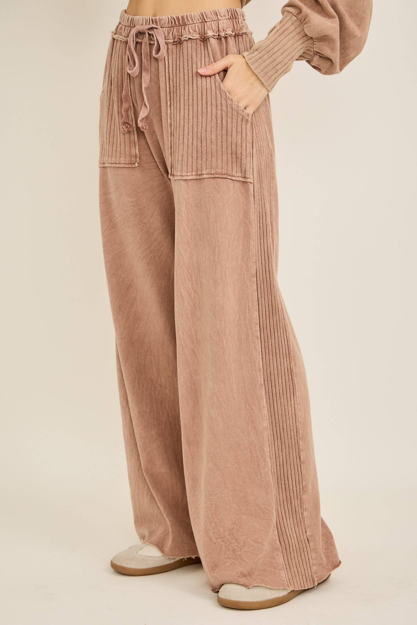 Mineral Wash Side Knit detail wide leg pants * Actual colors may vary due to screens displaying colors different. *